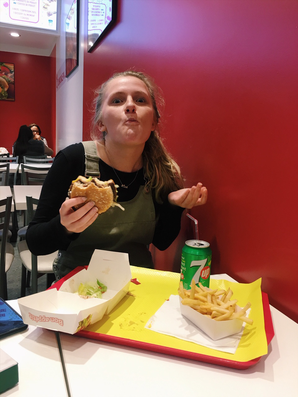 Inside every woman there are two wolves. One that requests a stranger in France to take her photo eating a hamburger so she can post it on Instagram with the caption "DABURGER"...
